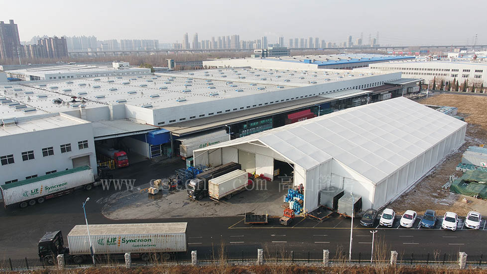 在旺季時期只要場地允許,鋁合金結(jié)構(gòu)篷房可根據(jù)貨物的具體量及時增減。廠家提供3-70米跨度,長度以3米或5米為單元進行延伸,采用模塊化的方式搭建速度快,在短期內(nèi)即可投入使用,作為臨時建筑審批便捷,根據(jù)當?shù)氐恼哌M行即可,審批流程相比傳統(tǒng)建筑簡單。