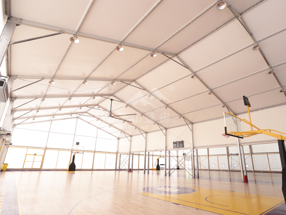 體育篷房采用模塊化設計,跨度可達50米且內(nèi)部無立柱,完美適配籃球、羽毛球等對空間要求高的運動。通過配置專業(yè)地板、照明及通風系統(tǒng),篷房可輕松切換為多功能場館——上午舉辦籃球賽,下午改造為羽毛球場,晚上轉為文藝演出空間。其結構具備極強的環(huán)境適應性:鋁合金框架與PVC篷布可抵抗10級大風及-30℃至50℃的極端溫度,結合雙層保溫層與智能通風系統(tǒng),實現(xiàn)冬暖夏涼的舒適環(huán)境。