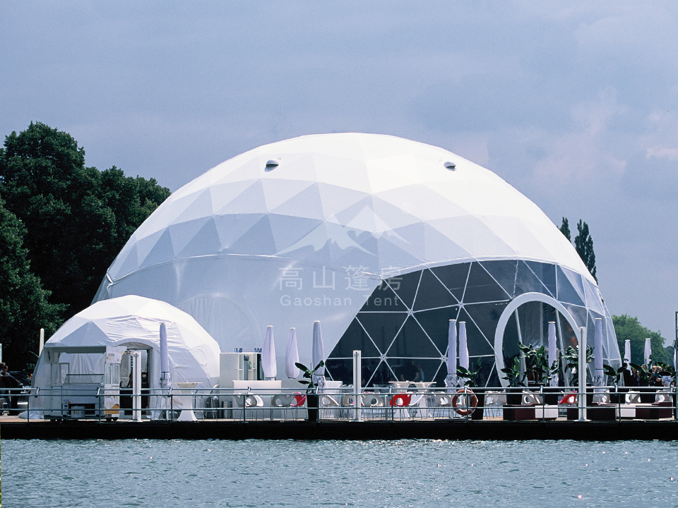 篷房采用高強(qiáng)度鍍鋅鋼管與850g/㎡雙面PVC阻燃篷布,抗風(fēng)等級(jí)達(dá)8-10級(jí),抗震性能通過(guò)國(guó)家標(biāo)準(zhǔn)檢測(cè)。篷布具備防火(歐洲B1級(jí)阻燃)、防水、防紫外線功能,在-30℃至50℃環(huán)境下保持穩(wěn)定性,使用壽命可達(dá)20年。此外,球形結(jié)構(gòu)分散壓力,遭遇強(qiáng)風(fēng)或積雪時(shí)不易變形,安全性遠(yuǎn)超普通帳篷。