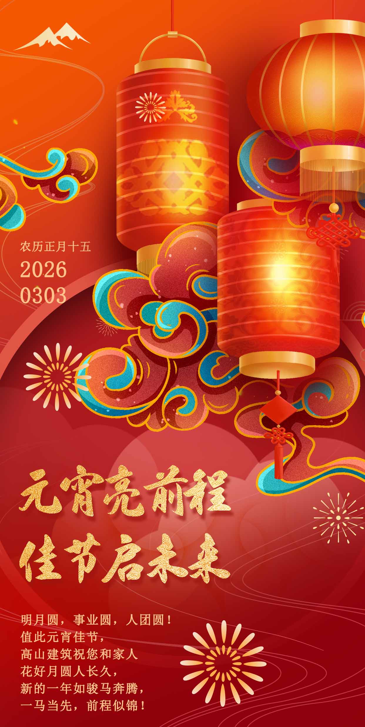 燈火璀璨映佳節(jié),元宵安康啟新篇。當一輪圓月懸于夜空,當一盞盞花燈點亮街巷,我們迎來了正月十五元宵節(jié)——這個承載著團圓期許、寄托著美好愿景的傳統(tǒng)佳節(jié)。值此良辰,高山篷房向每一位并肩同行的伙伴、每一位支持信賴我們的客戶,致以最誠摯的元宵祝福,愿大家歲歲皆圓滿,事事皆順意。
