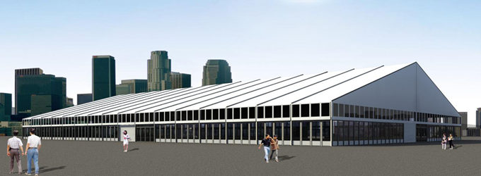 適合搭在較大地面上的多邊形篷房,造型別致,遠(yuǎn)遠(yuǎn)就能看見,且內(nèi)部空間寬敞,輕松裝下幾百個(gè)標(biāo)準(zhǔn)攤位,尤其適合北方地區(qū)的大型展銷會(huì)和集市。