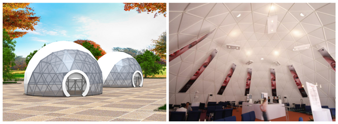 適合主題展覽的球形篷房,內(nèi)部立體空間大,適合別具匠心的大型展品或者展覽+表演,或者設(shè)置多層次的立體展示空間。