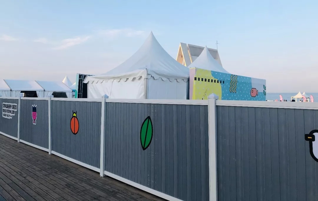 為更貼切本屆草莓親子音樂(lè)節(jié)主題,高山特在篷房外部制作相關(guān)的廣告圍板,噴繪logo等,用來(lái)展示主辦方與商家的標(biāo)識(shí),現(xiàn)場(chǎng)色彩鮮明,童趣滿(mǎn)滿(mǎn)。