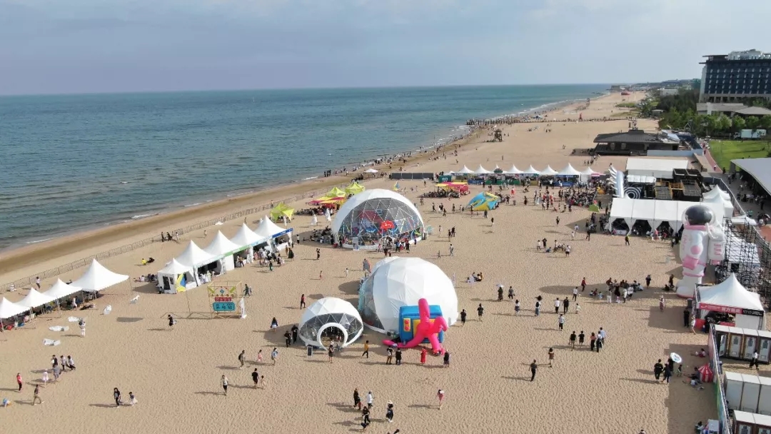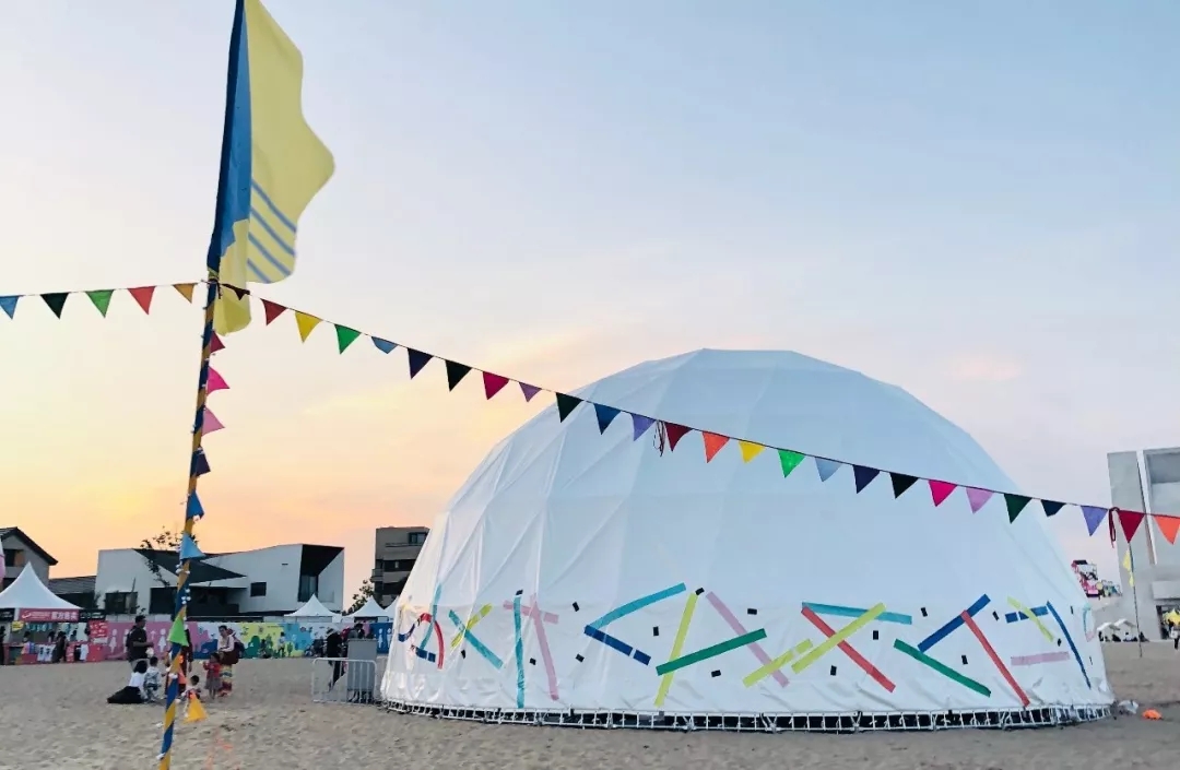 綿延數(shù)百米的黃金沙灘上,在高山搭建的六十余座篷房?jī)?nèi),音樂(lè)Live Show,互動(dòng)藝術(shù)工坊,親子玩樂(lè)體驗(yàn)區(qū),童趣打卡景觀......