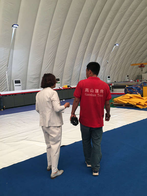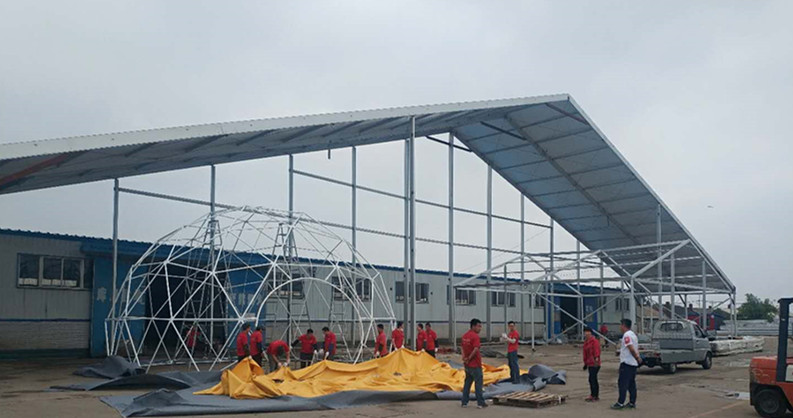 原來,每一個(gè)項(xiàng)目在交給客戶之前,都必須進(jìn)行篷房的試搭工作,在試搭的過程中需檢驗(yàn)產(chǎn)品的質(zhì)量是否過關(guān)、搭建技術(shù)是否過硬,經(jīng)檢驗(yàn)合格后方可交到客戶手上。