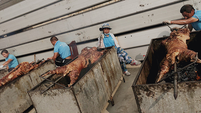 鍋里煮滿了狗肉,其他的鹵味,小海鮮豐盛滿滿,烤全羊的糊香飄進(jìn)村子,鄰居們也前來助興,各式各樣的啤酒擺滿桌子,好多進(jìn)口的啤酒大家都不認(rèn)識(shí),多虧有外貿(mào)部,告訴大家酒的名字、由來。