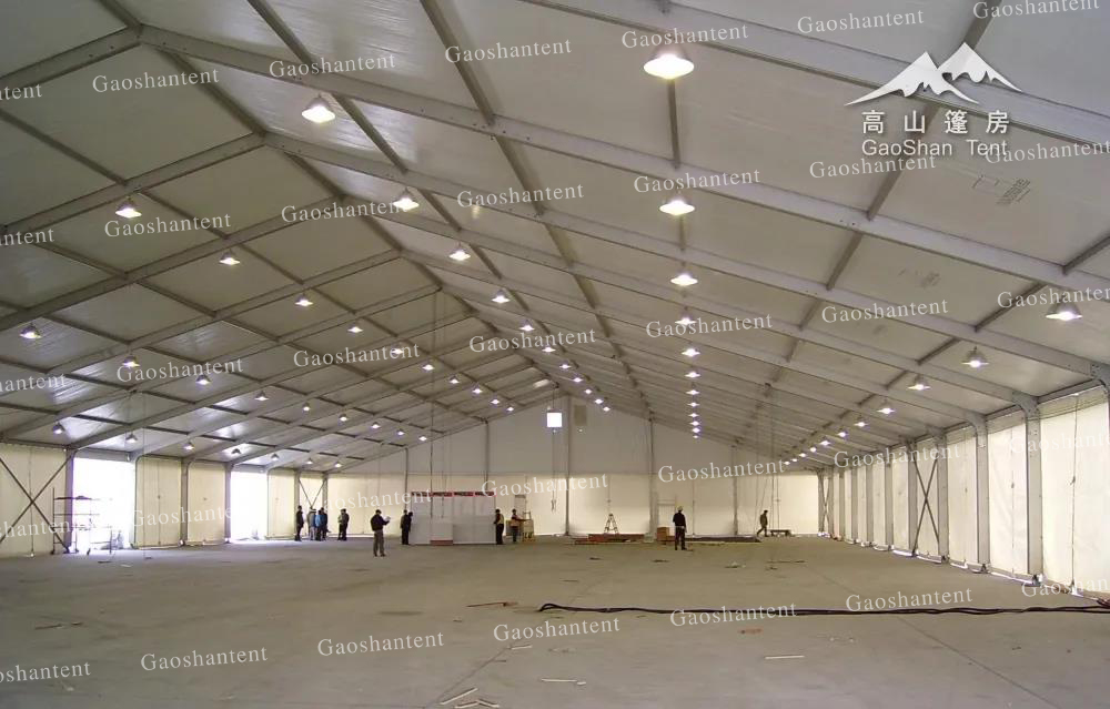 除此之外,篷房材料與結(jié)構(gòu)均在工廠加工和安裝,現(xiàn)場直接裝配后,即可投入使用,搭建效率快。正常情況下,一天即可完成1000平篷房搭建。同時篷房在外觀上和內(nèi)部配置上也是高端上檔次的一種流行的產(chǎn)品。